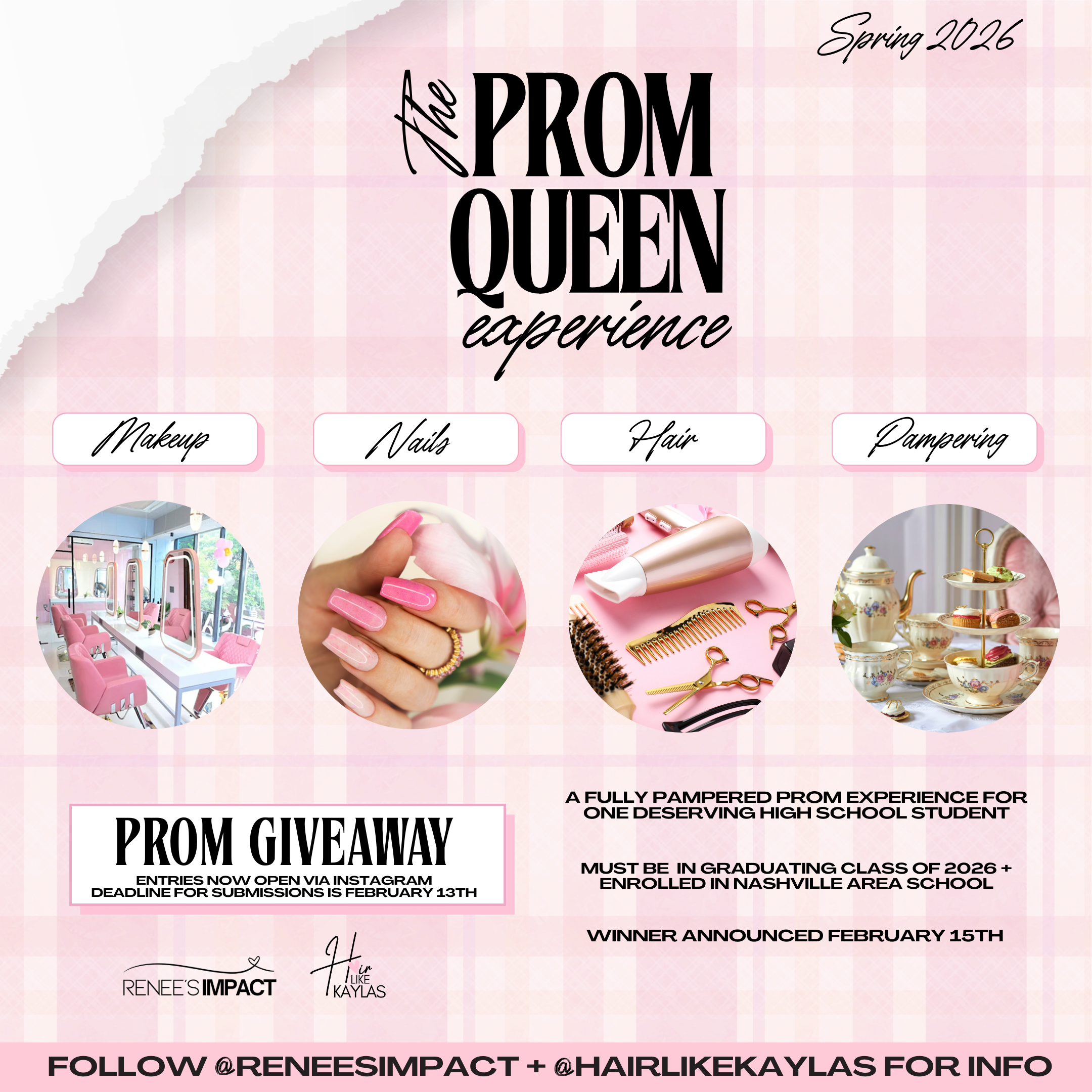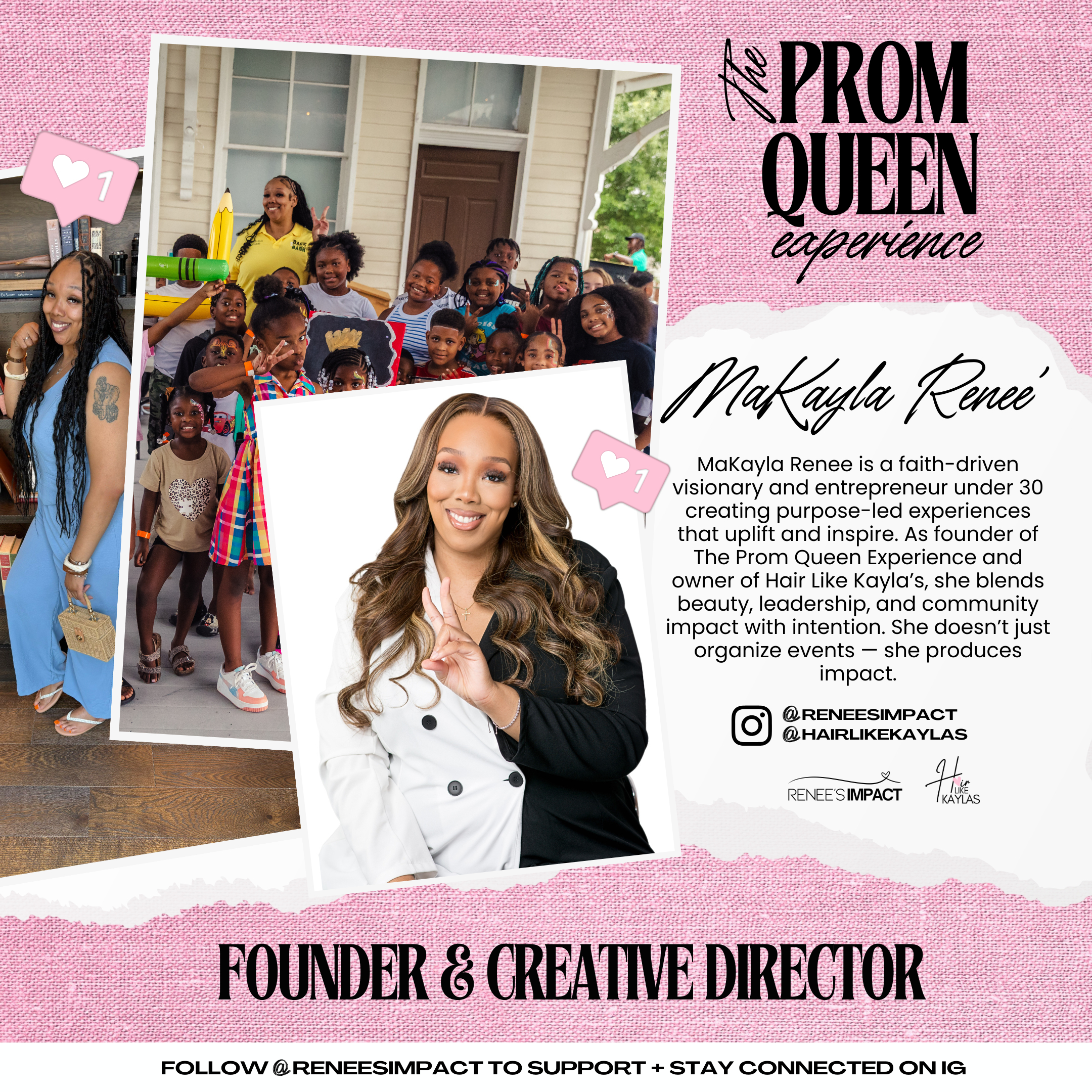 The Prom Queen Experience IS A COMMUNITY INITIATIVE THAT CELEBRATES GRADUATING SENIORS. THIS EXPERIENCE was officially created in January 2026 after years of sponsoring prom giveaways through my hair business, Hair Like Kayla’s, since 2018. What started as MAKING FREE WIGS AND GIVING AWAY HAIR FOR PROM, has now grown into a meaningful initiative designed to celebrate graduating high school seniors by providing a full prom-day transformation.